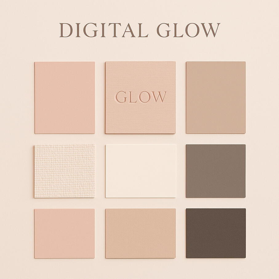 A soft mix of blush, nude, beige, and warm taupe — designed to evoke clarity, calm, and a gentle digital glow.